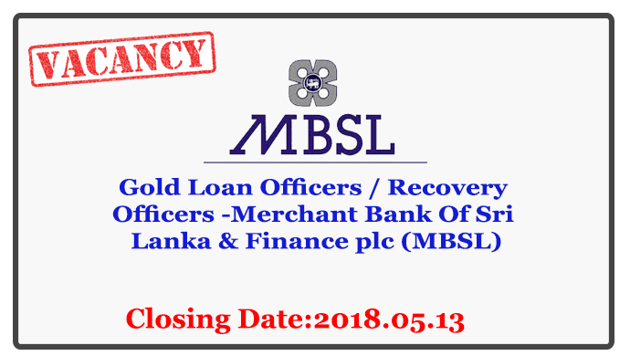 Gold Loan Officers / Recovery Officers -Merchant Bank Of Sri Lanka & Finance plc (MBSL)