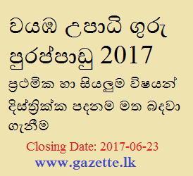 Teacher Vacancies 2017 (Graduates on District Basis) – North Western Provincial Public Service