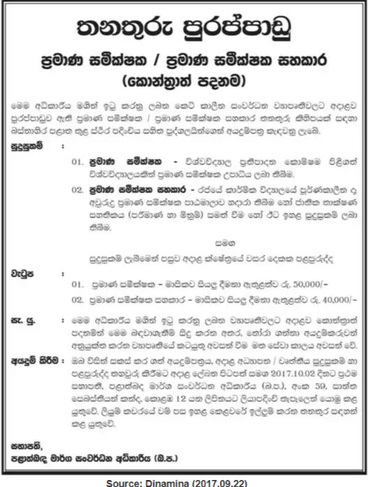 Quantity Surveyor, Assistant Quantity Surveyor-Provincial Road Development Authority (Western Province) September 22, 2017December 29, 2017 Gazette.lk