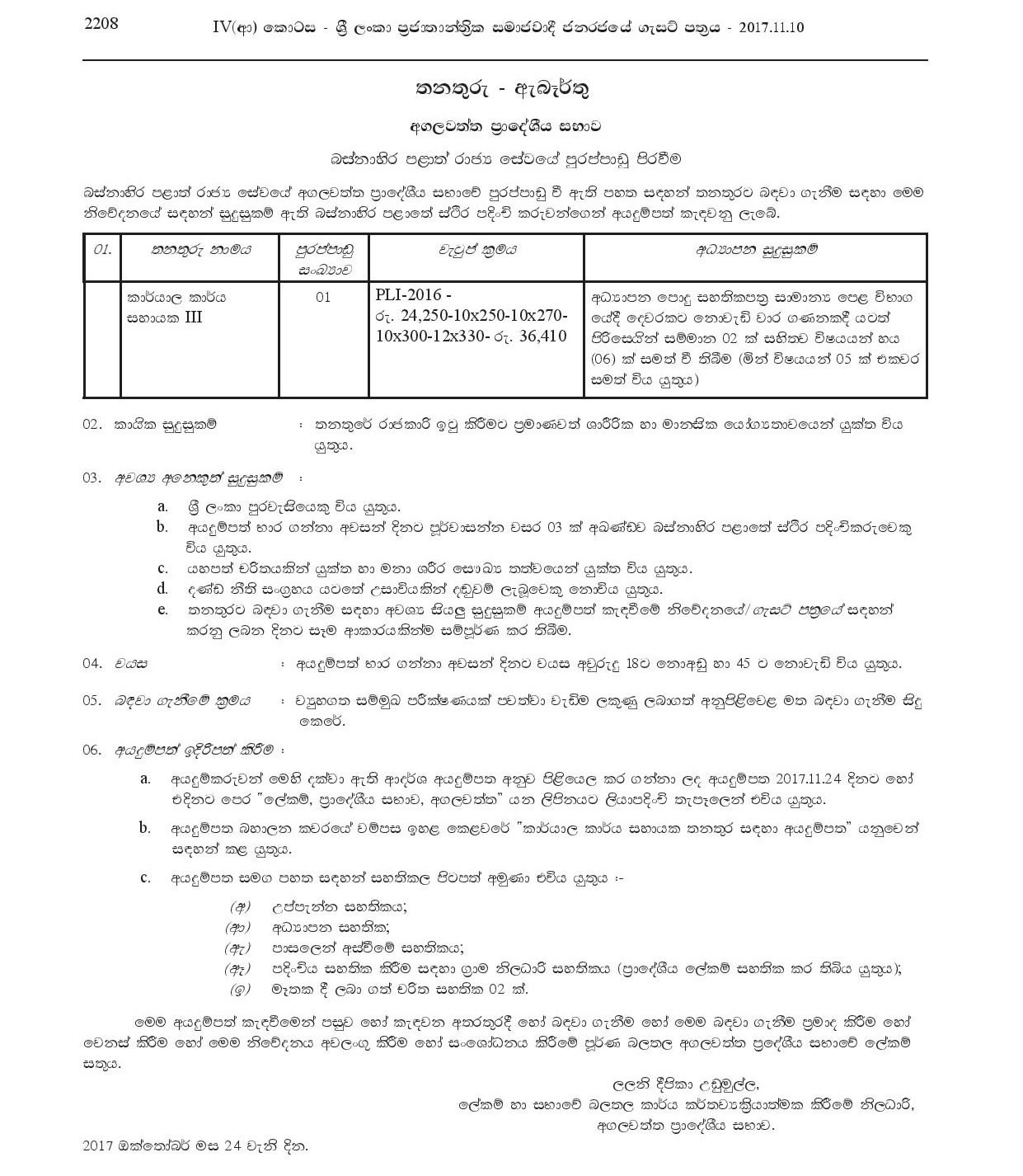 Office Assistant – Agalawatta Pradeshiya Sabha
