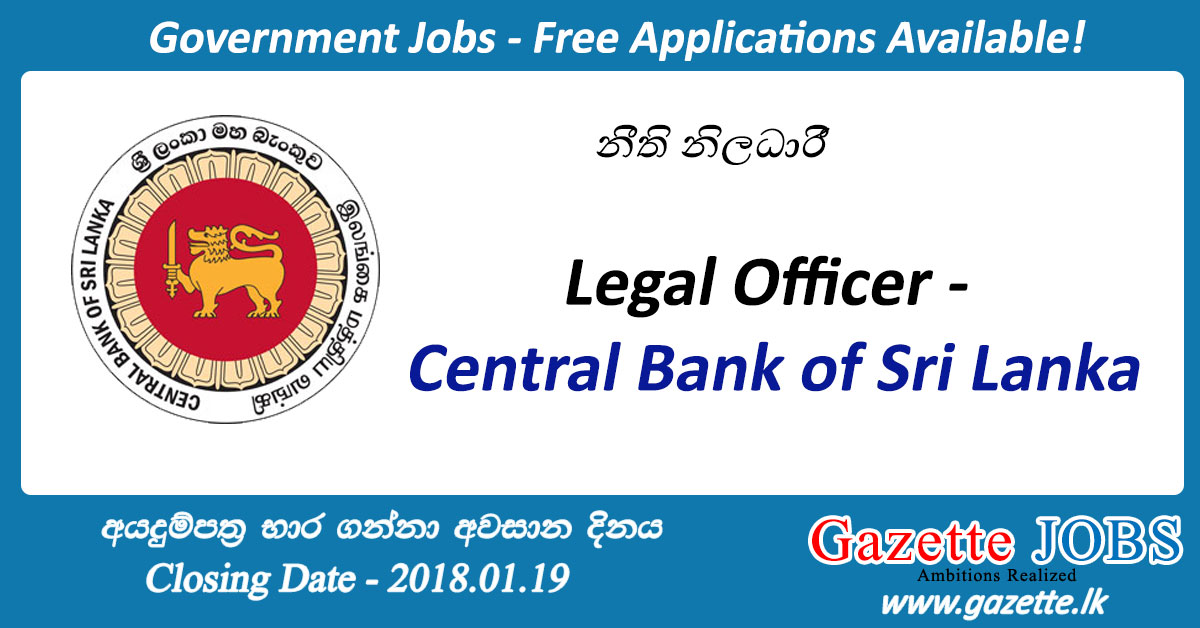 Legal Officer – Central Bank of Sri Lanka December 24, 2017December 29, 2017 Gazette.lk Legal Officer – Central Bank of Sri Lanka Closing Date: 2018-01-19 Central Bank of Sri Lanka Source: www.cbsl.gov.lk (2017.12.22) Jobs/CVs SMS Alerts Share this: Click to share on Facebook (Opens in new window) Facebook Click to share on WhatsApp (Opens in new window) WhatsApp Click to share on Telegram (Opens in new window) Telegram