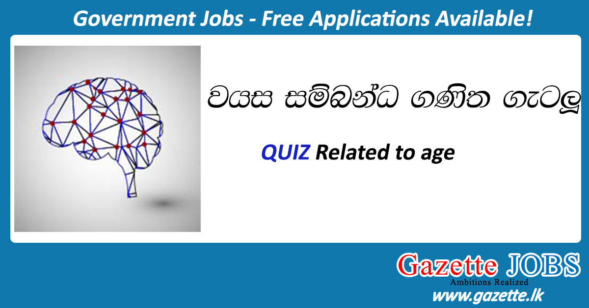 IQ Test for SLAS exams quiz related to age December 18, 2017January 17, 2018 Gazette.lk QUIZ related to age Source:SLAS group Jobs/CVs SMS Alerts Share this: Click to share on Facebook (Opens in new window) Facebook Click to share on WhatsApp (Opens in new window) WhatsApp Click to share on Telegram (Opens in new window) Telegram