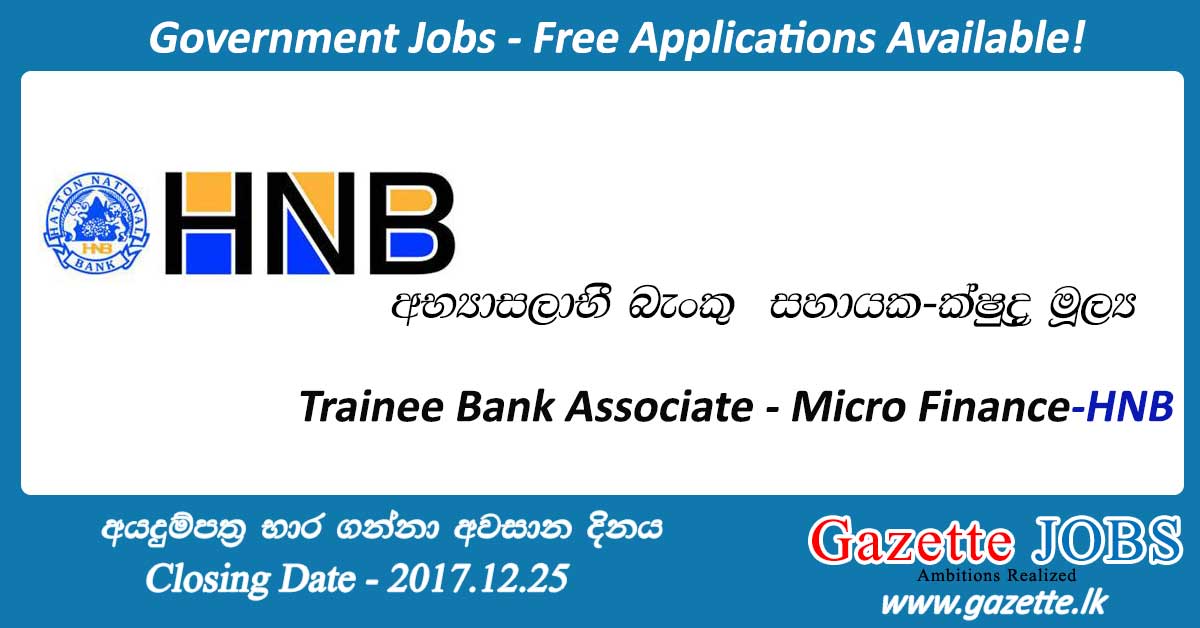Trainee Bank Associate – Micro Finance-HNB December 17, 2017December 29, 2017 Gazette.lk Trainee Bank Associate – Micro Finance-HNB Closing Date: 25/12/2017 Hatton National Bank Source:www.topjobs.lk Jobs/CVs SMS Alerts Share this: Click to share on Facebook (Opens in new window) Facebook Click to share on WhatsApp (Opens in new window) WhatsApp Click to share on Telegram (Opens in new window) Telegram