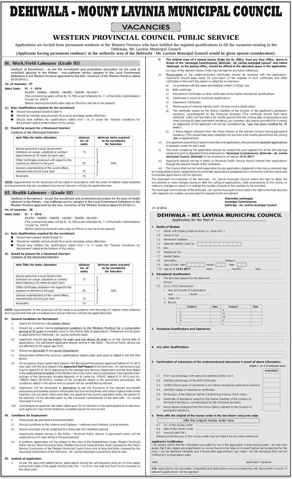 Work / Field Labourer, Health Labourer – Dehiwala Mount Lavinia Municipal Council January 2, 2017December 29, 2017 Gazette.lk