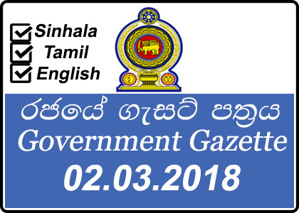 Sri Lanka Government Gazette 2018 March 02 (Sinhala / Tamil / English) March 2, 2018September 18, 2018 Gazette.lk