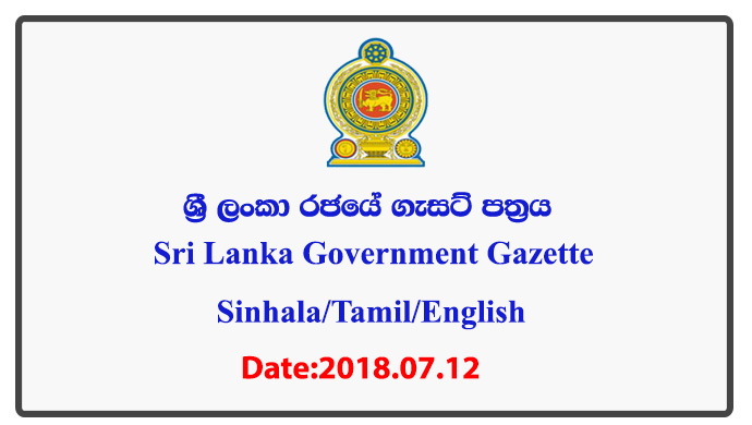 Sri Lanka Government Official Gazette 2018 July 12 (Sinhala / Tamil / English)