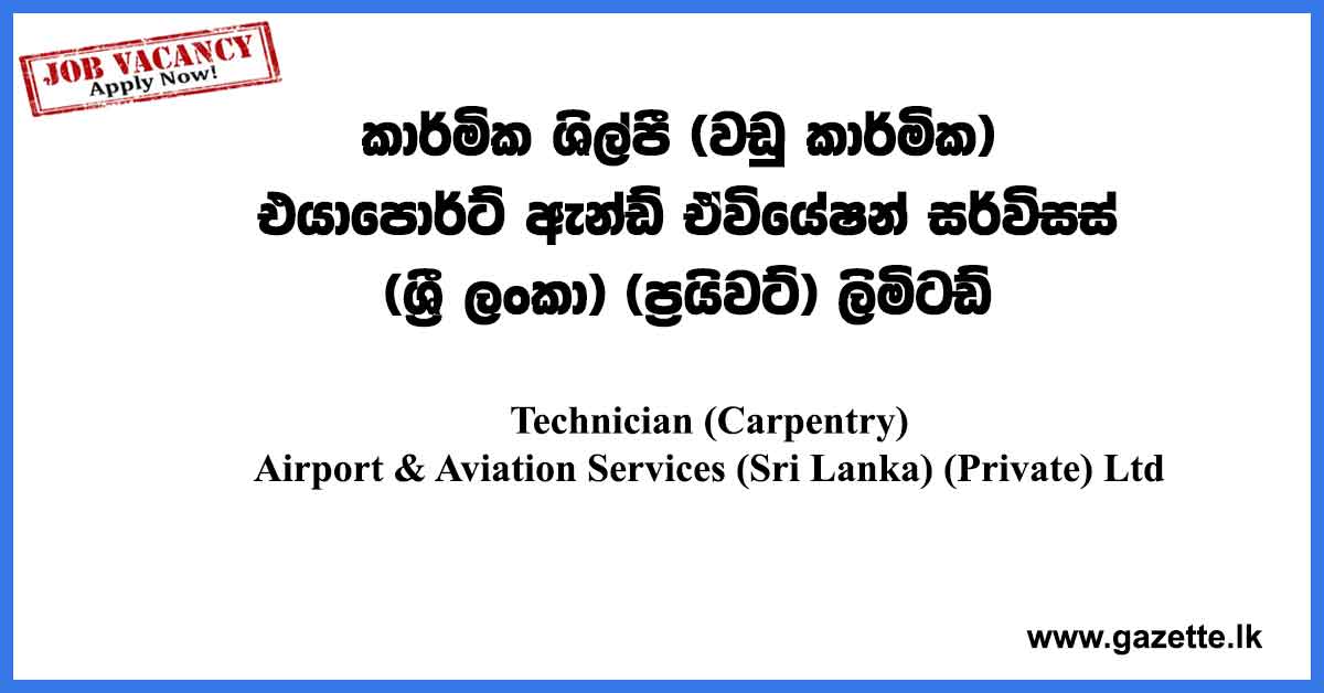 Technician (Carpentry) – Airport & Aviation Services (Sri Lanka) (Private) Ltd May 13, 2021 Gazette.lk