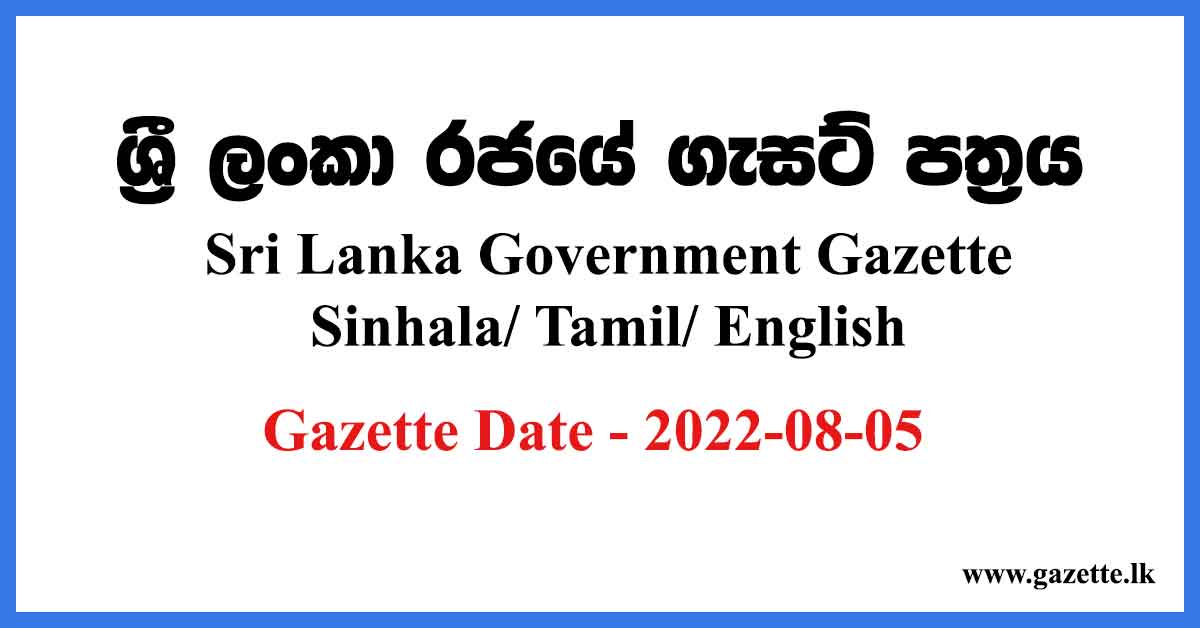 Sri Lanka Government Gazette 2022 August 05 Sinhala Tamil English