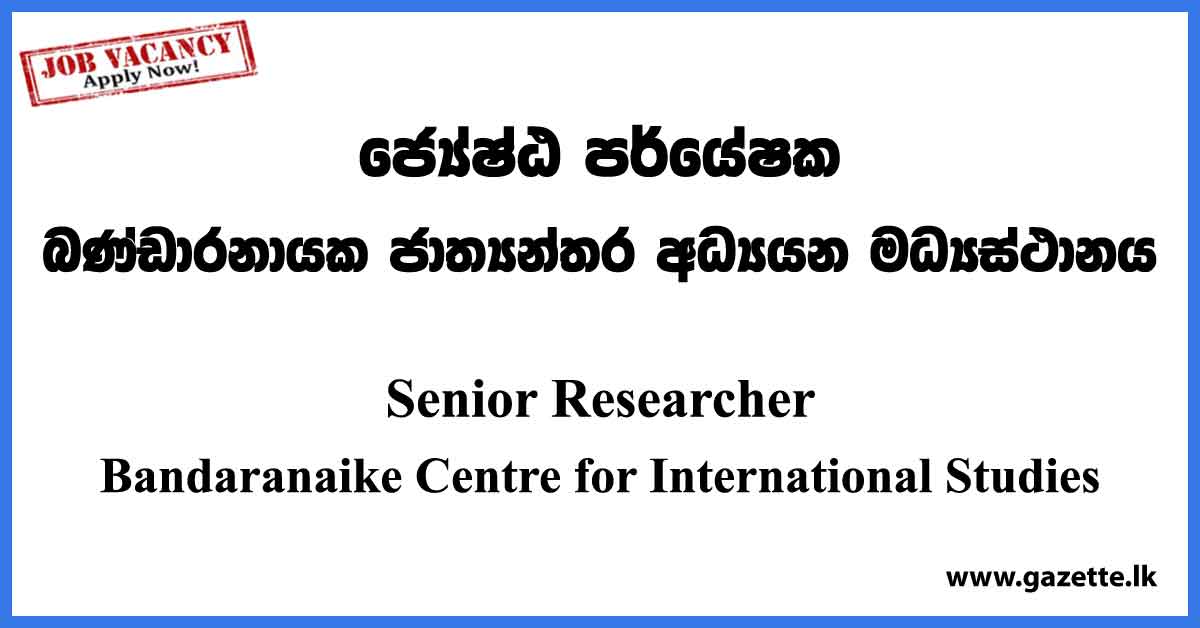 Senior Researcher Job Vacancies in Sri Lanka 2023