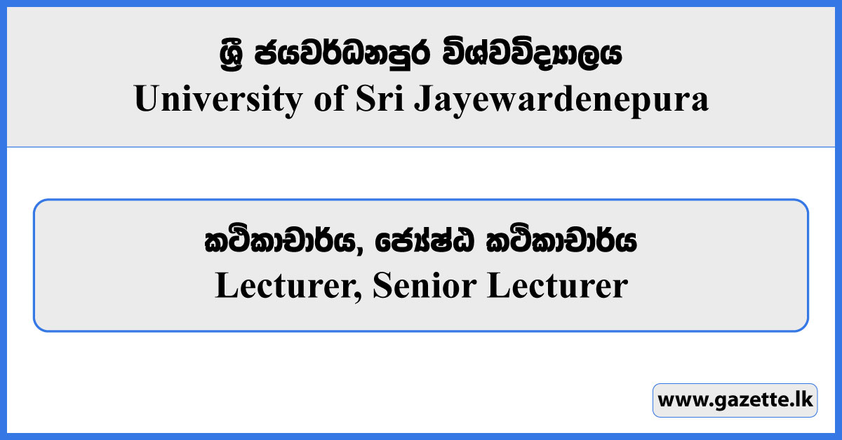 Lecturer, Senior Lecturer – University of Sri Jayewardenepura