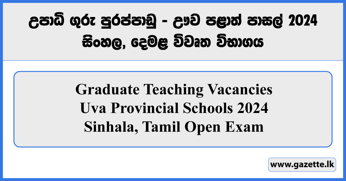 | Job Tittle | Graduate Teacher Vacancies – Uva Provincial Council – 2024 |