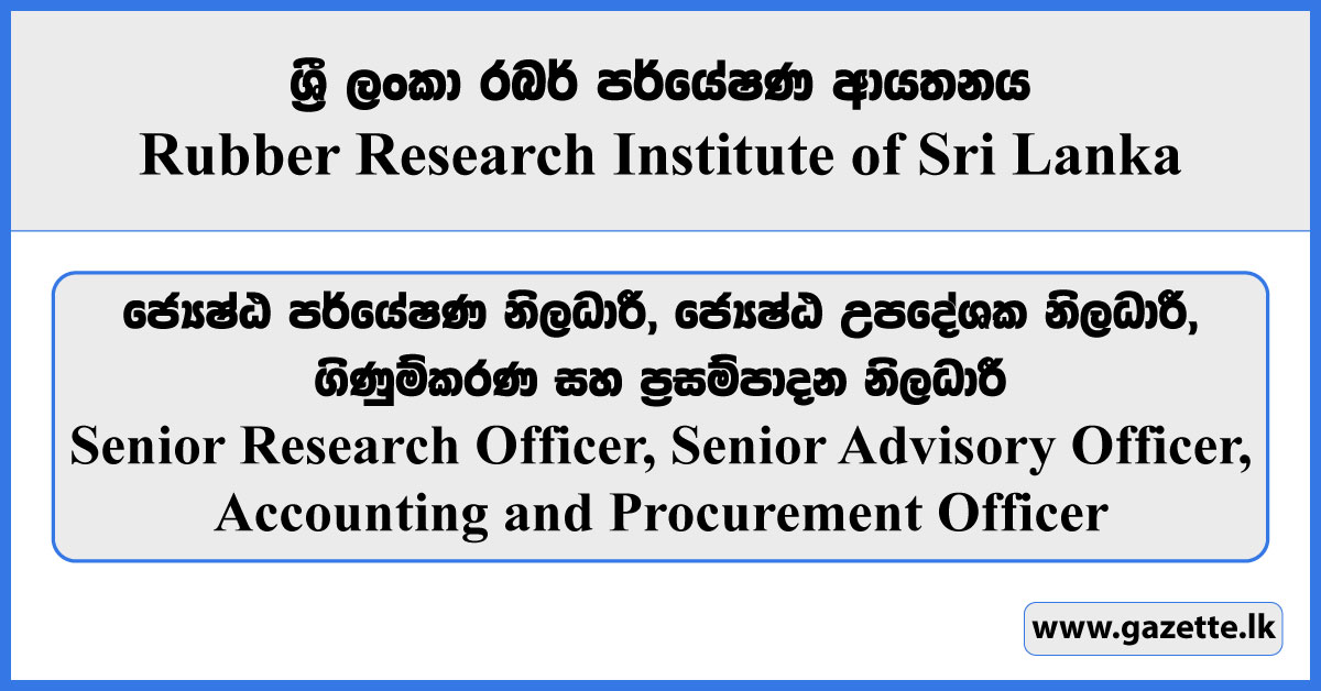 Senior Research Officer, Senior Advisory Officer, Accounting and Procurement Officer – Rubber Research Institute of Sri Lanka