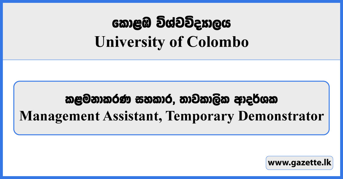 Management Assistant, Temporary Demonstrator – University of Colombo