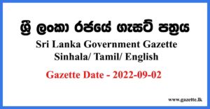 Sri Lanka Government Gazette 2022 September 02 Sinhala Tamil English September 1, 2022September 28, 2023 Editor