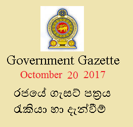 Sri Lanka Government Gazette 2018 October 26 (Sinhala/Tamil/English) October 26, 2018October 26, 2018 Gazette.lk
