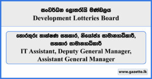 Assistant General Manager, Information Technology Assistant, Quality Control Assistant – Development Lotteries Board January 26, 2021 Gazette.lk
