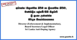 Director, Research Officer, Technical Assistant – Sri Lanka Anti-Doping Agency Vacancies 2023 November 26, 2023November 26, 2023 Editor